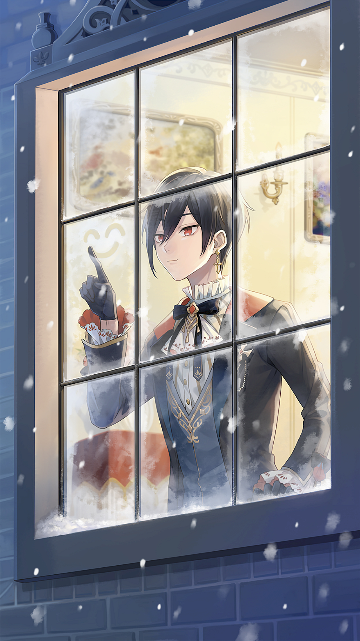 于是,他沾着玻璃窗上凝结的雾气,为他的“幽灵朋友”涂画了一个小小的笑脸。그래서, 그는 유리창에 맺힌 안개와 함께 그의 "유령 친구"를 위한 웃는 얼굴을 그려줬다.
