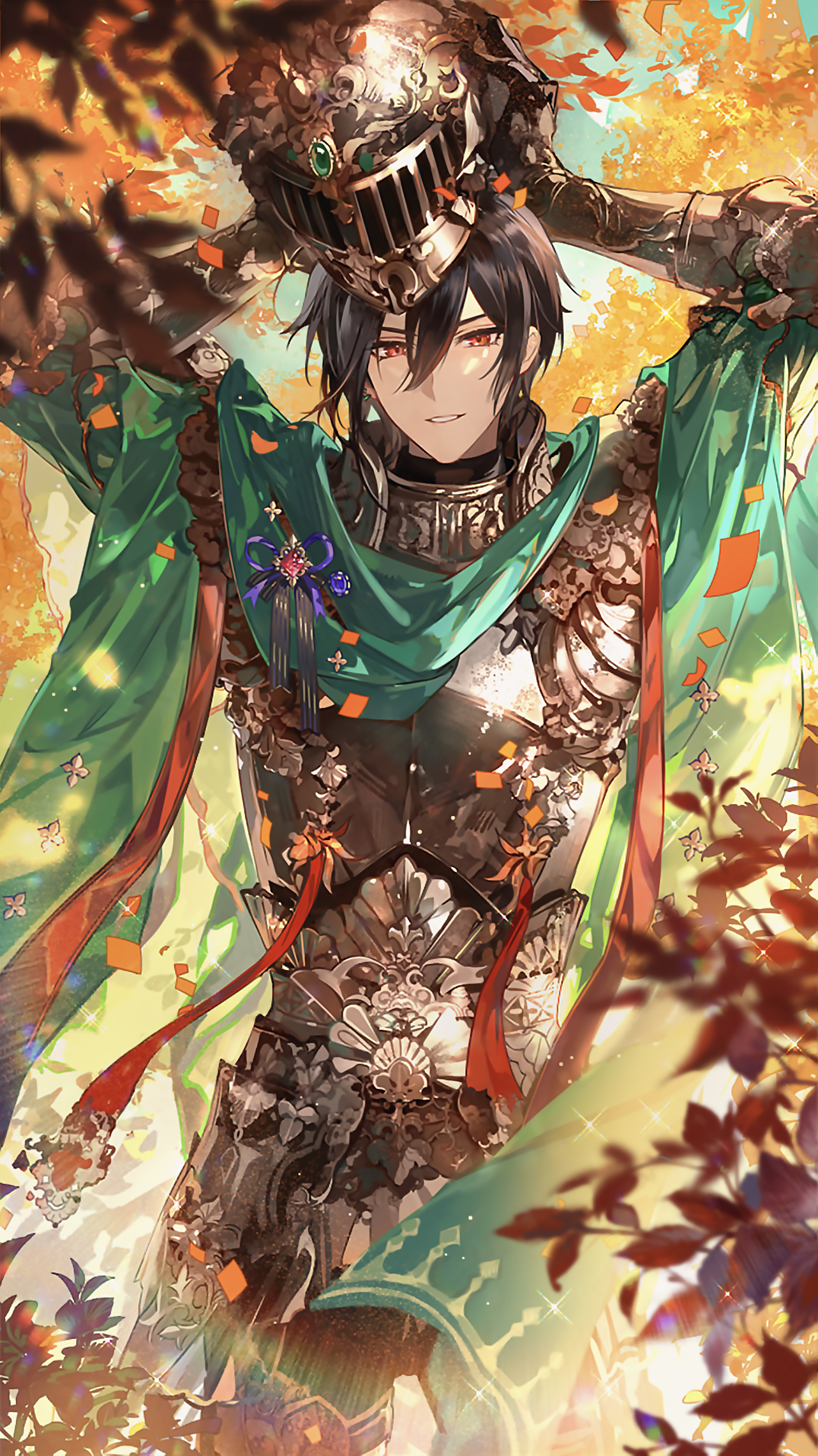 他终于脱下面甲,点漆似的眸光微闪,最终以一个笑脸定格。그는 투구를 벗고 옻칠을 한 듯한 눈동자를 반짝이며 마침내 웃는 얼굴을 보여줬다.