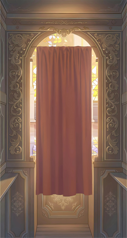 艾因带着我一路向前,我注意到大厅里有很多隔断的小隔间,有点像忏悔室,却比现实中更加密集。아인은 나를 이끌고 계속 앞으로 걸었고, 나는 홀에 칸막이로 나뉜 작은 칸들이 많은 걸 보았다. 고해소 같았지만 현실보다 훨씬 빽빽했다.