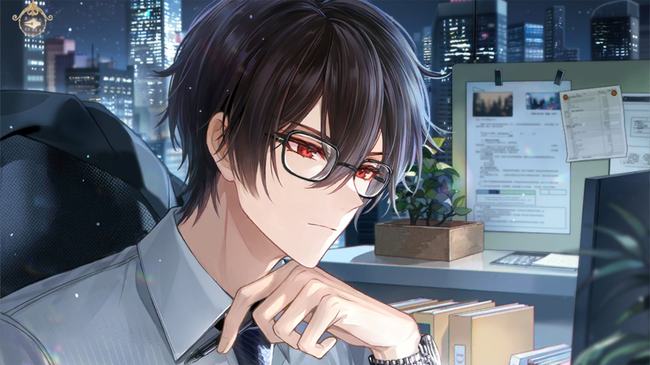 艾因坐得挺拔,架在鼻梁上的防蓝光眼镜隐隐透着屏幕上的数据。一盏孤灯的光芒落下,为他刻画出一个柔和的轮廓。아인은 곧게 앉아 있었고, 코등에 걸친 블루라이트 차단 안경에는 화면의 데이터가 은은히 비쳤다. 외딴 조명의 빛이 내려와 그에게 부드러운 윤곽을 그려 주었다.