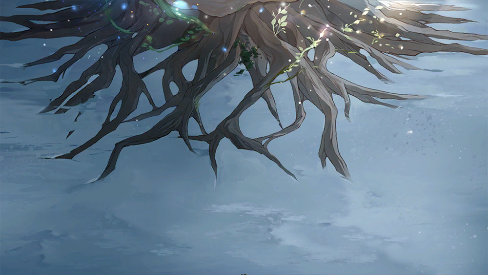 望向那被砍断的树根,知道它飘散的力量和知识就是我应得的报酬。잘려나간 신수의 뿌리를 바라보며, 그 안에서 흩날리는 힘과 지식이 내가 받아야 할 보상임을 느꼈다.