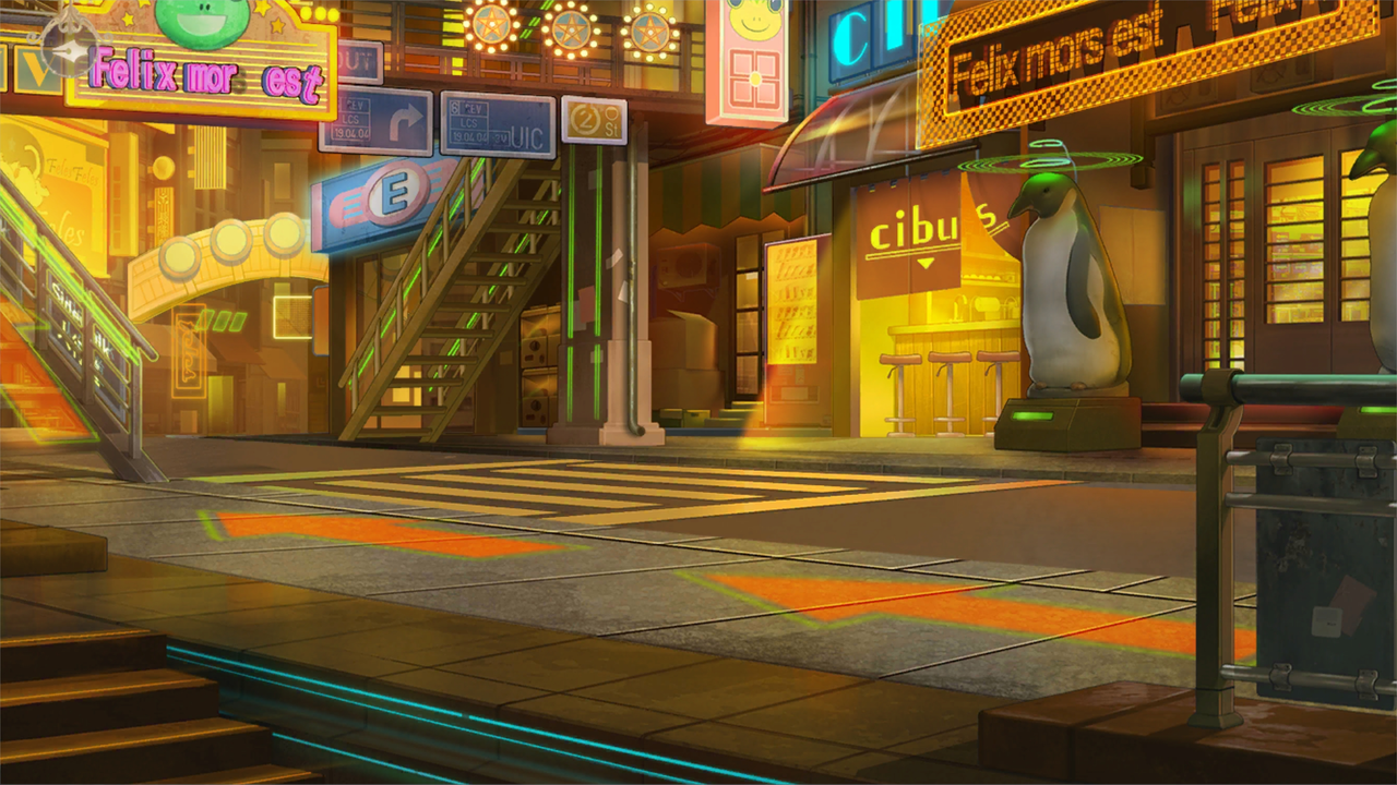 或虚拟或真实的人海在街道上流动着,今夜有一个赛博盛宴。가상이든 현실이든 인파가 거리 위를 흐르고 있었고, 오늘 밤에는 하나의 디지털 축제가 있다.