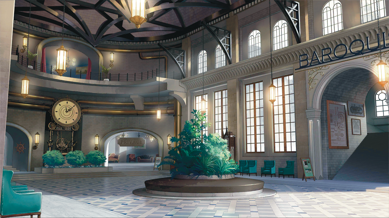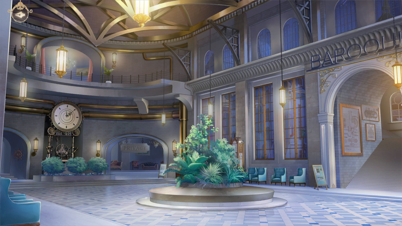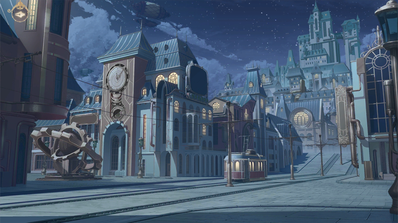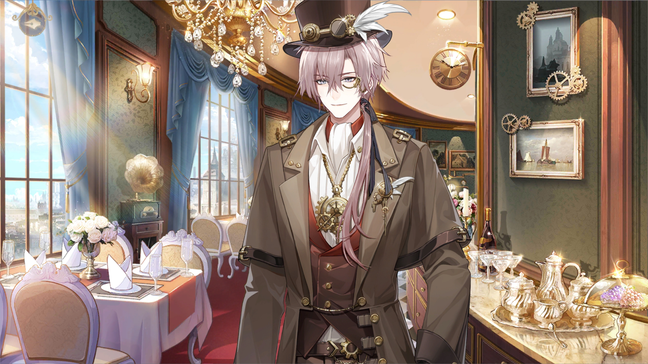 举着酒杯的男士们更是夸张,肩膀和腰腿都装配着沉重的机械护甲。술잔을 든 신사들은 더 과장되어 어깨와 허리, 다리에 무거운 기계 갑주를 달고 있다.