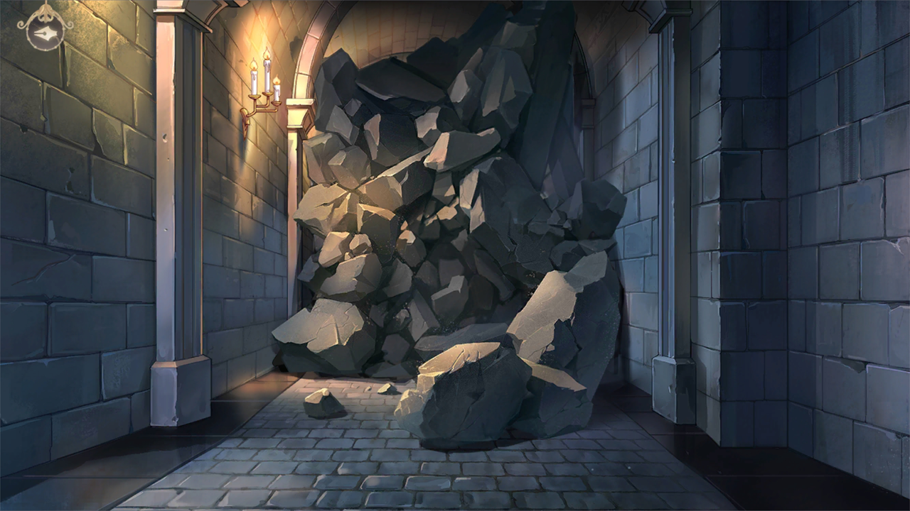 很快他们走入了黑暗,遗迹地形呈环形,越往中间走,会有盘旋向下的斜坡。곧 그들은 암흑 속으로 걸어들어갔다. 유적의 지형은 고리 모양이고, 안으로 갈수록 나선형 내리막이 이어졌다.