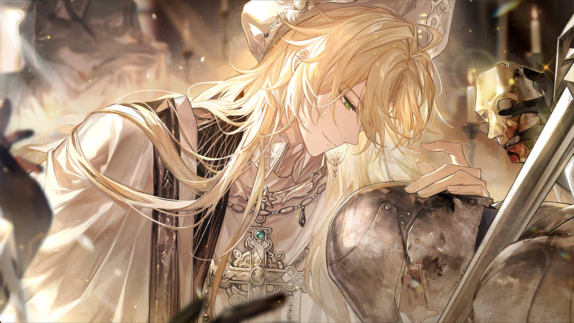 在圣城最高的苍穹中,一个声音于锁链间低语着。성도 가장 높은 창공에서, 사슬 사이로 목소리가 들려왔다.