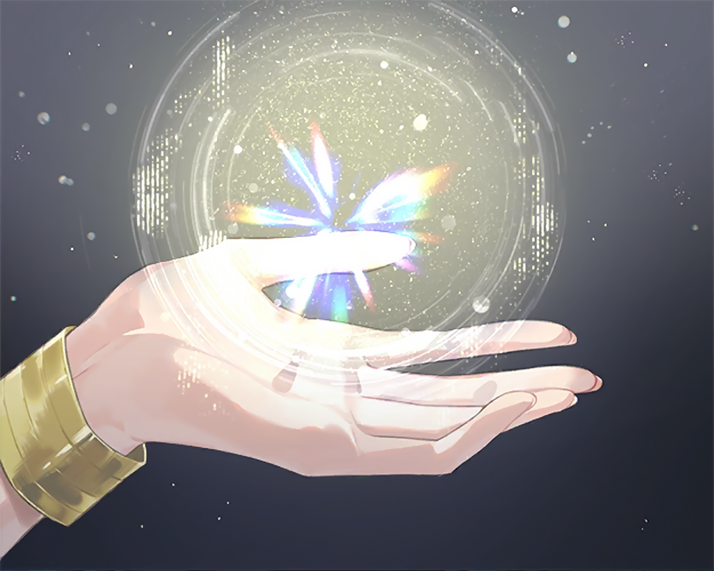 下方诸多光芒变幻,代表幻境构造者的记忆。아래에서는 수많은 빛이 변주되며, 환영을 만든 자의 기억을 상징했다.