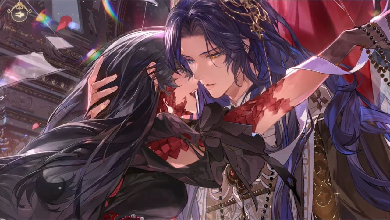 他抱着我,幽蓝的卷发环绕在我身侧,馥郁的香气让我有些晕眩。그는 나를 안았다. 짙은 푸른빛의 곱슬머리가 내 곁을 감싸고, 짙은 향기가 나를 조금 어지럽게 했다.